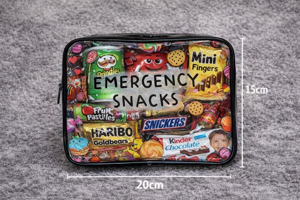 This clear 20cm x 15cm zip pouch is perfectly sized to stash your must-have snacks – sweet, salty or sanity-saving. Small enough to pop in your bag, big enough to handle a snack emergency like a pro.